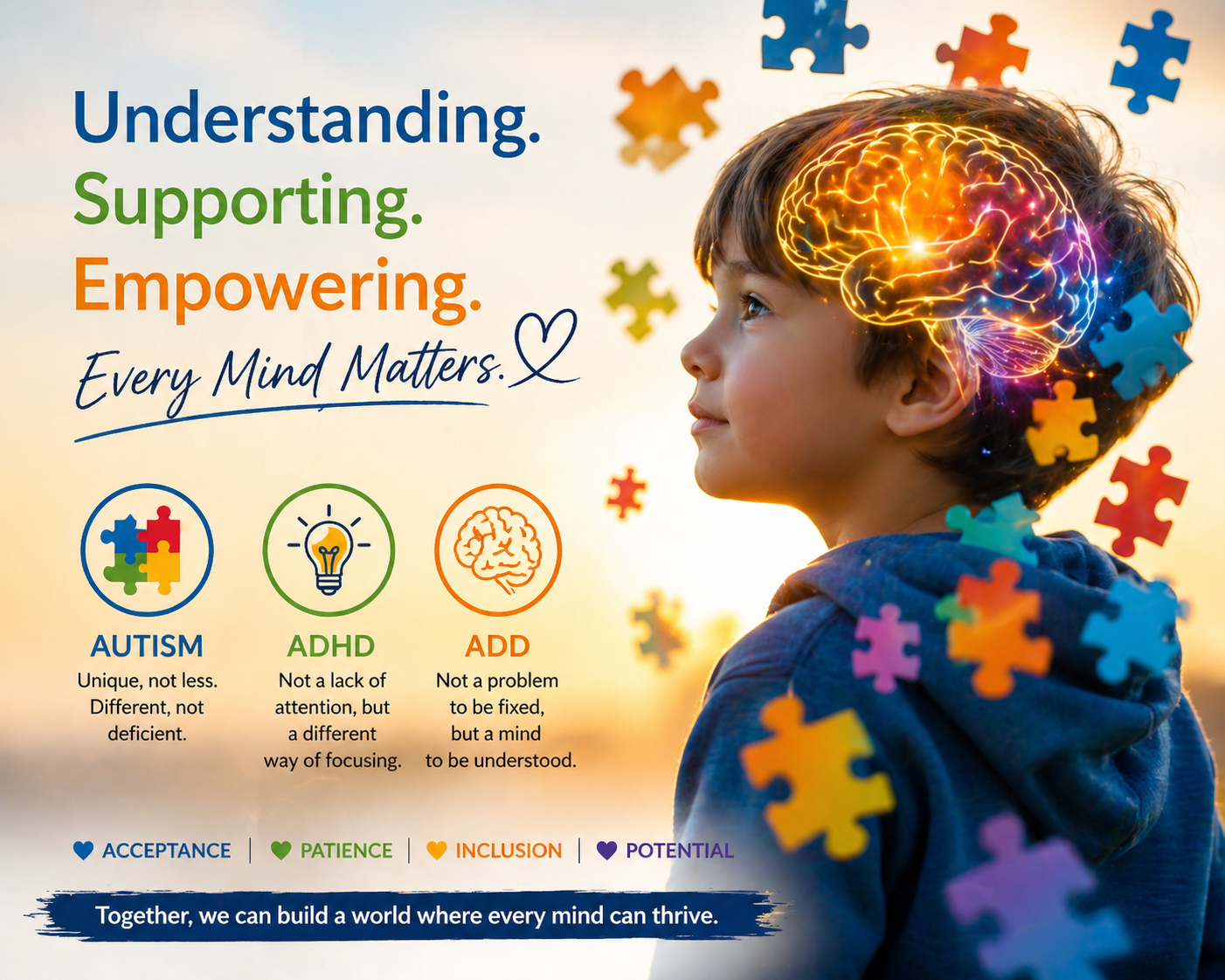 Our holistic therapies naturally support individuals with ASD, ADHD, and ADD through biofeedback, NLP, and specialized nutrition, enhancing focus, emotional regulation, and cognitive function.