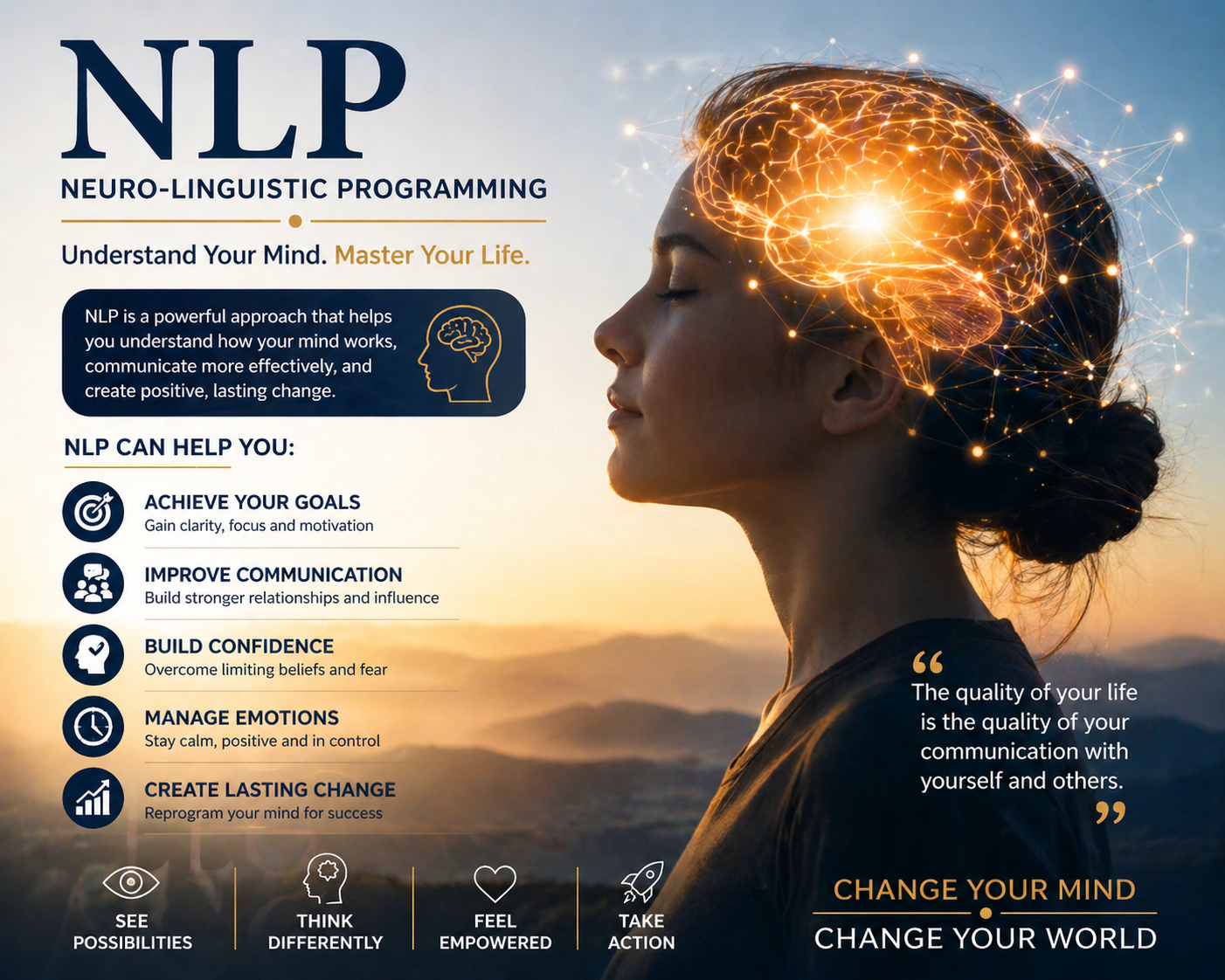 Coaching approach supporting communication skills, mindset awareness, and personal development through structured techniques.