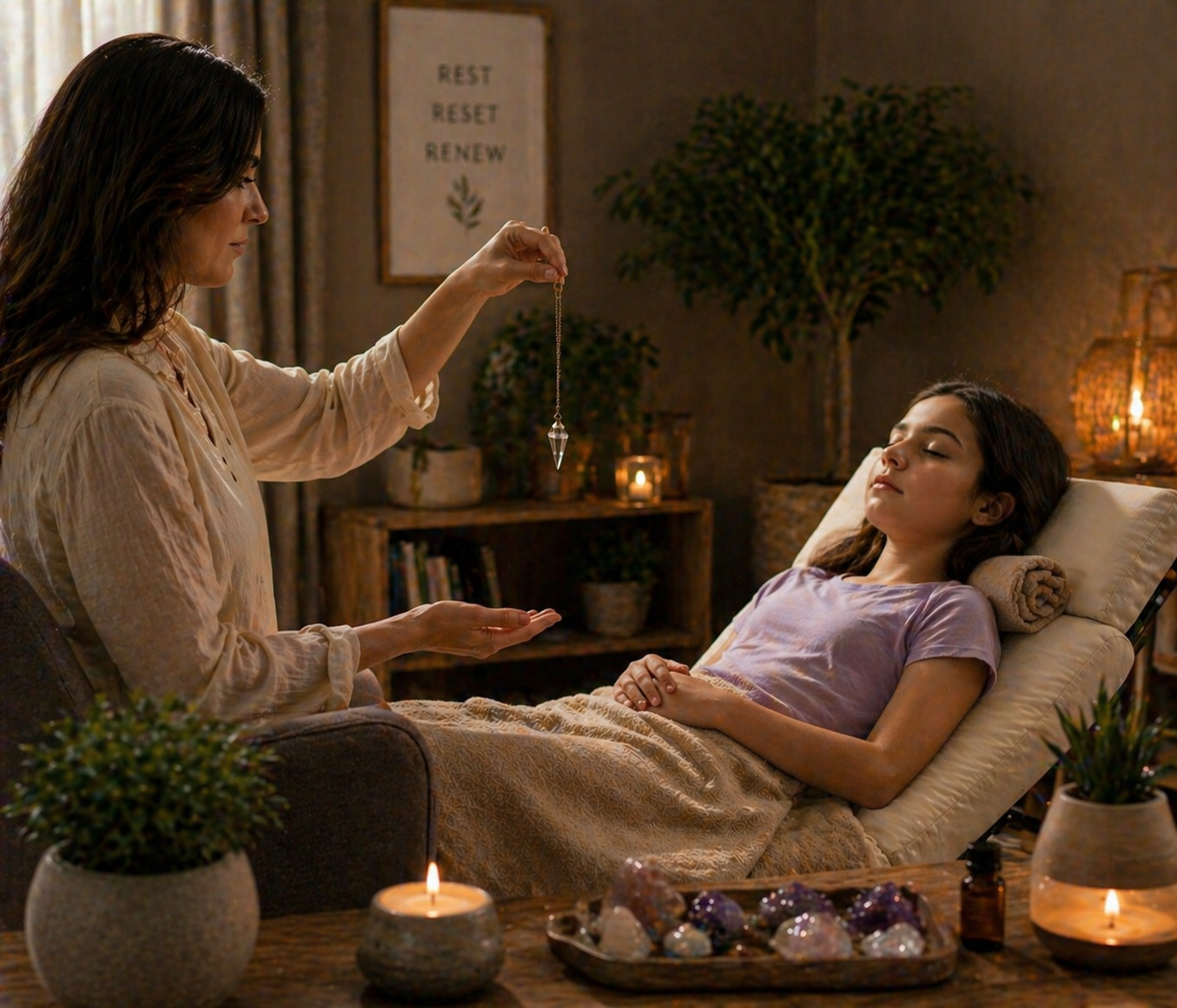 Holistic wellness approach using energy-based practices, enhancing inner harmony, relaxation, flow, and balanced daily living, supporting vitality awareness, without medical claims.
